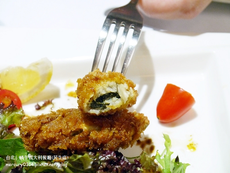 感覺這義式炸物,介於美式重口味與日式淡口味之間,鎖住牡蠣濕潤又不壓味。