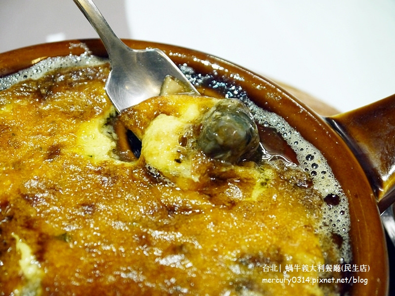 雖然不太明瞭義式烤田螺跟法式烤田螺有何差異,