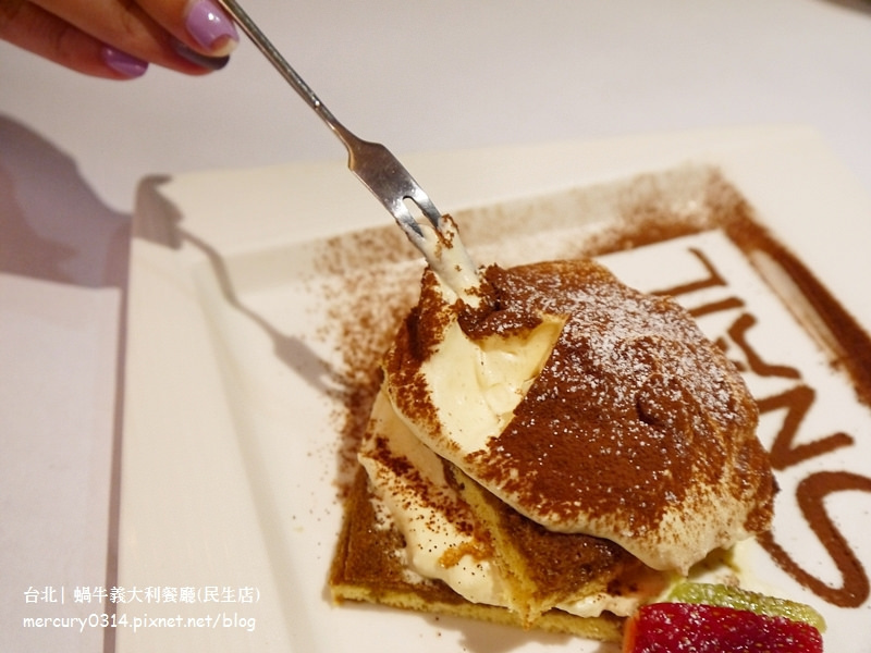 道地提拉米蘇長得像顆小漢堡,光是上層馬斯卡邦起司與可可粉就讓人幸福滿格